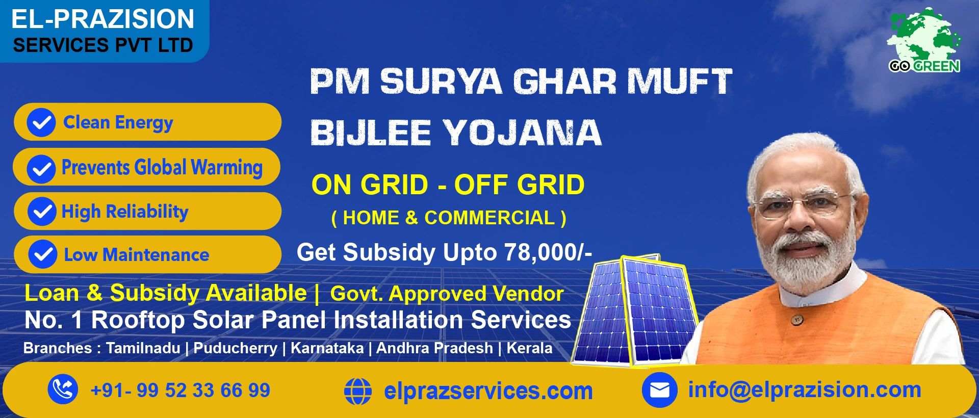 El‑Prazision is a full‑service rooftop solar installer in Tamilnadu, offering residential and commercial systems, subsidy facilitation, and post‑installation support with strong local presence and positive customer feedback.